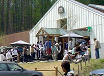 | R19中山道を南下してR361へ、 新地蔵トンネル(寒かった!)を抜けると そこは白樺の多いきれいな 開田高原が広がっていました、 しか〜し、郷土館あたりのおそば屋さんは 激混み、近所のラーメン屋さんなんて スープが売り切れ(!) しぶしぶ、やなぎちゃんおすすめの 開田高原アイスクリームでも食すべかと お店に向かうが(ーー;ここでも長蛇の列。 |