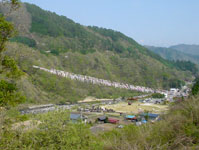 今日まではいいお天気の予報なので たくさん走るなら今日だわ♪と せっせと朝食をとる。 TOMOEさんは「ツーリングライダー」らしく 本日は移動するそうでテントは撤収し、 「らしく」ない我々のテントはそのまま。 キャンプ場そばの広場にたくさんの鯉のぼりが 泳いでいたので、それを見てから出発〜 |