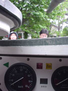 80km/hまであったしな、 「早い早い〜」と大喜び♪ 敷地内のコースを1周、戦車の燃費って 軽油だけど、なんとリッター300m なんですって、どえらく悪い燃費。 重いから当然だけど、 このコースを走るのに 2Lは確実に使っているんだよね(^^; 乗り心地?そーねー、ものすごく がたがたしていましたが それがアトラクションの様でした(笑) |