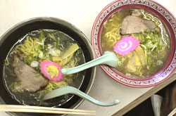 ![]() 左:烏骨鶏ラーメン(塩)¥700、 右:伝説の塩ラーメン¥600 |
