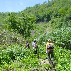 | 下山は少しガレてる道もあるので、思ったほど早く降りれなかったけれど お花を見ながら優雅な山歩きでした。 んでもって、さんざんたかられていた虫は後日ブユ(ブヨ)と判明。 翌日には熱をもって10倍以上に腫れて、痛痒さが1週間つづくのでした(泣) 夏山歩きに虫よけは絶対ですね(反省)。 |