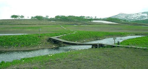 ![]() 木道あるきをちょこっとだけ、崩れ落ちちゃいそうな橋。 |