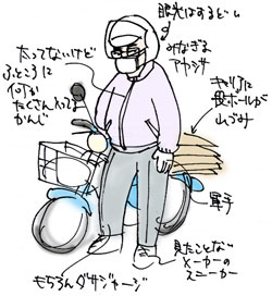 ![]() オバちゃんジェッペルに マスク、言ったらきりがないほど アヤシスギルオヤジ@スーパーカブ90。 |