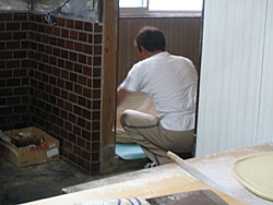 ![]() 奥では生地をふみふみして、 丸めて寝かしています。 |