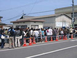 ![]() なんじゃ!! この大行列はっ。店は角を曲がって さらに20mほど先に入り口があるのです。 |