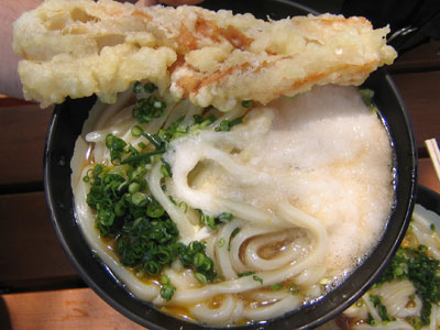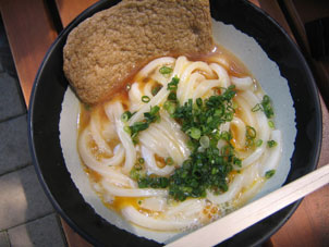 | 最後なのでここは欲張って2玉食べちゃいました(^^; お外でどんぶり抱えて食べるスタイル、食べてると チュンチュンとすずめが寄ってきます(かわいー)、うどんのきれはしを少し 投げると、上手にキャッチしていきます。 これは、かなりかわいー。。。すずめといっしょにウマウマしました。 |