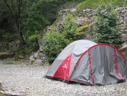 ![]() ひな壇形のキャンプ場なので、 荷物を運ぶのがけっこうタイヘン。 |