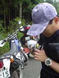 前日まで徹夜含めてかなりハードでタイトなお仕事だったために 高尾山に続く寝坊ちゃん、起床予定時間を30分オーバー! (でも、30分オーバーで起きられてヨカッタ…) あわてて着替えて、でも日焼け止めだけはシッカリ塗って ゴハンも食べずにシェルパ・極悪1号くんのカバーをひっぺがします、 そう、今回はTOMOEさんが山歩きした後に某所でのキャンプに向かうということで 近場の丹沢、そしてバイクでGo!と相成ったのです。 |
