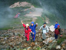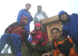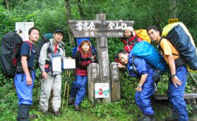 ![]() よくがんばりました、下山後みんなでパチリ☆ 荷物の大きさはやっぱりすごい。 |