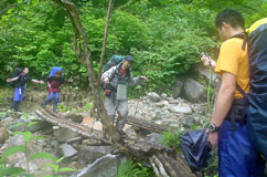 ![]() 丸太2本の橋、慎重に、テンポよく。 |