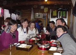 | コッテコテの豚汁はかなり 疲れた身体にはうれしかったらしく、 高山病になりかけてたhideki氏は もりもりおかわりしたら、治っちゃってました (単にお腹へってたんじゃ。。。) そんなこんなで、深夜まで出たり入ったりで それなりに騒々しくはあったものの、 思ったよりは良く眠れたのでした。 |