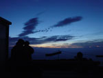 | 朝日と強風を受けながら。 薄い空気のせいで文句も言えずに ちんたらペースで登る。 振り返ると、太陽館が どんどん小さくなっていく。 さすがに宿泊したので 大分身体は高いところに順応したみたい アタマ痛くないし♪ 雲も頭上すれすれを流れていきます。 |