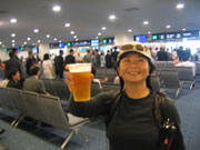 | [05.06.17] 1日目 晴れ 朝のラッシュ時に遊びにいく荷物で 電車に乗るのが嫌なので(ささる視線がイタイ) となり駅発の高速リムジンバスにて羽田に向かう。 そういや第二ターミナル利用は初めてだわー♪ 9:00に待ち合わせのところ、8:30には到着、 はりきり過ぎちゃったかなぁ、 ま、早い分には問題ないし(^^)と へなねえにメールをすると彼女も到着済み。 お互いはりきり過ぎ? とっとと手続きを済ませて 出発ロビーへ。もちろんおはようびぃるもね。 |