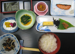![]() 朝ごはん、これにおみおつけが付きます。 |
