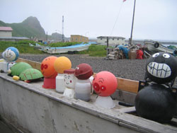 | 西上泊にあるお土産物屋さんで、タコザンギ¥200と燃料にびぃるを注入(笑) このタコザンギは、生ダコにカレー粉をかるーくして揚げたもの、 とっても柔らかかくて、おいしかった〜 そして、ふっと見るとその売店のわきっちょに白いふわふわが… 「あー!ゴマちゃんだー!」 スコトン岬限定販売のはずがなぜココに? お店のおじさんいわく ココでのみの販売になったとのこと。えー、知らなかったよーそんなの! でも、出会えてよかったわ、ゴマちゃん。 |
