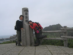 ![]() 澄海岬の展望台にて、やっぱり強風。 |