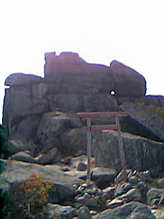 | ほどなく山頂に到着、すごい風でふきとばされそうになりながら 三角点にタッチ&撮影、そのままヨロヨロと金峰山のシンボル五丈岩へ 近くで見るとかなりの迫力のこの岩、自然に折り重なっているんです 不思議だわー、この岩にとりついて登っている人も多いけれど この裏が断崖絶壁なのを前回登って知っているだけに 私はあたらずさわらず眺めるだけにとどめておきます(^^; 風のあたらないところを選んで軽食を摂り、30分ほど休んでから ピストンなので往路と同じ道を歩いて帰りました 標準タイムでは行きより帰りのほうが30分早いんだけど ほぼ同じタイムで戻りました、やはり下りが苦手なようです 鍛えるのと同時にウェイトダウンはやはり課題かな〜と実感です。 |