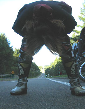 ![]() この写真を撮影しているとき、 車で来ていたカップルも撮影中だったけど、 我らがアホな事やるたびに 「きゃーきゃー」いって喜んでもらえました。 車線を書く準備をしている工事中のおじさんにも 「バイクどけて」と 笑いながら言われてもめげずに撮影を続けました。 2003年9月。 投稿:けいこさん&ちぃにぃちゃん >> *ナイス夫婦おばかライダー写真、いーですわ♪[管理人] |