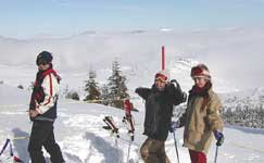 雲の上に自分がいるのが良く分かります ここから軽〜く下まで流します、 ゴンドラ駅を過ぎるとやはりガスがものすごいです、しかも雪もカチカチです、 しょうがないので上部の 白根ゲレンデだけを滑ることに。 今回初めてSKIをご一緒する Tさん、Cさんおふたりとも上手です! |