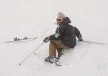 | 前方不注意スキーヤーの私は、 ギャップを確認せずに突っ込むので 刺さる、コケる…でも雪まみれで楽しい♪ 途中食事休憩し、車に一度もどり スノーブレードに履き替えます、 どっちも滑りたいんだもん♪ |