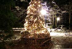 | ちょっと冒険してコブコブなんぞ行って Yちゃんに抗議されるが、ここまで来たら滑るしか下りる方法がないので滑ってもらい(暴) 山頂ではふところに忍ばせたBeerを山頂で楽しみ一日たっぷり初滑りを堪能しました。 16:00くらいにゲレンデを後にして、帰りがけに今日の宴のためのお買い物に行きます が、開いているスーパーが見当たりません、地元風の親子づれさんにスーパーの場所をきいて 無事にお買い物できました、ありがとーお父さん!! 秘密基地に帰還し、ここからはお料理上手なTさんがお夕飯の支度をしてくれます、 お手伝いもあまりいらないみたいなので(なんて素敵♪)、私とYちゃん女子のみで温泉の大浴場で向かいます 途中エントランスから雪の中にあるクリスマスツリーが見えました、とってもロマンチック。 そういえばもうすぐクリスマスだったね。 |