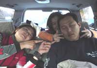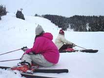 | このランチタイムあたりから、ユル〜クなって眠くなってきました。 イカン、あと1本くらいは滑らないと後悔しそうだ! 奮起してゴンドラに向います、案の定足はガクガクしています。 やはりあなどれぬ八海山のコブ。この1本でギブアップ、 クルマにもどってまたまたBeer Time、帰りは着替え無しなので、 のんびりおしゃべりしながら飲んで、16:00くらいにスキ−場をでました。 |