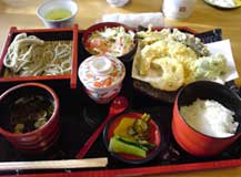 | 山頂は雪が降ったらしく、ふかふか雪で気持ちが良いです。 しかし、雪が雨にかわる辺りから「ずしっ」とかき氷状態の雪に 急に変わってビックリします。 結局ゴンドラ2本にリフトを数本滑って あっさりあがって、帰り仕度。「これでもいっぱい滑ったよ、 まいりました八海山」 しっかりこの日のうちに筋肉痛になったし。 昨日寄った酒屋さんにまた立ち寄り、おみやげに足りない分を購入。 高速に乗る前にお昼を食べに 『田畑屋』というおそばやさんへ寄って腹ごしらえをして帰路につきます。 ![]() 田畑屋セット¥1100-オトクです |