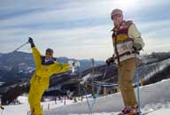 | 今日は夜から雨という予報だったので、だんだん雲が多くなって きました、それでもいままで晴れて暖かかったので 雪がどっしり重くなっていて、さらに荒れてきたコブを滑るのが 辛くなってきたので、フラットバーンをCさんと滑ります。 日が傾いてきて、時間も16:00を回ってきました。 では最後に全長2.8kmのミルキーウェイに行きますか、と 上に行くがリフトが終了、ちぇ。 残念ですがタフなコースを滑ったので足はけっこうプルプルしています、 日帰りスキーとは思えないくらい滑ってとっても満足、ごちそうさま。 Tさんはまだまだ滑り足りないみたい!スゴいタフネスです! |