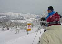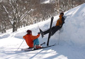 13日まで雪が降っていたらしく、 コースの外はふかふかのパウダースノーがあります、ここは午前中のうちに パウダー好きは滑るしかないでしょー、とロープをくぐって コース外へ、ワタクシはパウダーがちと苦手なので コース内を行きます、でもちょこっとはパウってみたくなって なだらかなコースの外へ出てみました。 案の定、雪に埋もれて足とられてコテっとコケちゃいましたが この時期にしてはなかなか良い雪でちっとも痛くないです(^^) しかし、ガンガン整地・コブコブもがんがん滑ります、 そしてあちこちで適宜アドバイスつきでお勉強にもなります、が、 なかなかそんなにうまくいかないのよねん。 |