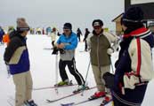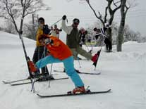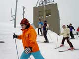 | 椅子のないゴンドラで15分ほどで山頂へ、リフトでやまびこゲレンデへ行き 準備運動をして、「くれぐれもケガのないように」と本日の隊長いーくんから 滑り始めます、続いてみんな滑っていくのですが、kuriさん、HIROMIDORIちゃん、 よいよいちゃん、いーくん、おだっちはみんなスキークラブに所属されているので さすがにみんなキレイなフォームです(しかも速いし)。 「やばいよ〜、今日はレベル高し。。。」と思いながらも いつもの調子でてれてれ滑っていきます(それしかできないし)。 |