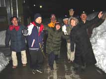 そして花火があがります、ゲレンデの花火は あがって辺りを明るく照らして、 音は雪に吸い込まれていきます。 しばし、ほけ〜とみとれてしまいました。 気がつけば空は快晴、 月も星もとってもキレイに見えます。 花火も終わって、身体はすっかり冷えています。 お宿に戻ってだらだらしていると、 男性陣は外湯へ行くとのことだったけど、 疲れが出てしまったので、ちょっと仮眠。。。 喉が乾いて起きると、朝の5:00! そのまま寝てしまったのです。 せっかく今回も良いお酒を 持ち寄って下さったのに、飲めませんでした。 とーっても残念。 |