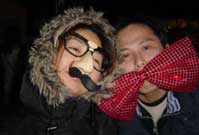 ホットワインを 振る舞ってくれています。 寒いので中から あたためるに限ります! 地元の子供達のダンスに、 じゃんけん大会、道祖神太鼓、 その後になんか不思議な曲が 流れてステージで歌が はじまりました。 |