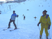 ちぃにぃちゃんは片足で滑り始めます。 しかし結構急斜なので辛そう、ちょうど ゴンドラの終点駅付近だったので ちぃにぃちゃんひとりゴンドラで下ることに。 最後ににぃちゃんと、ykuriさんが 『なんちゃってモーグル』コースで華麗な滑りを 見せてくれて、駐車場へ。 いやはや、初滑りからハードだったわぁ なんぞいいながら、ゴンドラ乗り場付近で 待っている人を忘れて、もたもた着替えはじめる。 温泉セットだけバッグから出して 荷物は屋根に積んでしまい、 けっこう待たせてしまってるのに ちぃにぃちゃんからは催促の電話がありません。 |