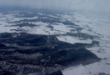 ![]() もうすぐ着陸、直線でしきられ、道も まっすぐ。蛇行しているのは川くらい。 |