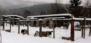 ![]() ![]() ![]() トラックに犬の入った木箱とそりを乗せてコースへ。 お留守番のコたちは睨みをきかせて、「連れてけ」アッピールや 「いいなーっ」と羨望のまなざしで見たり。 |